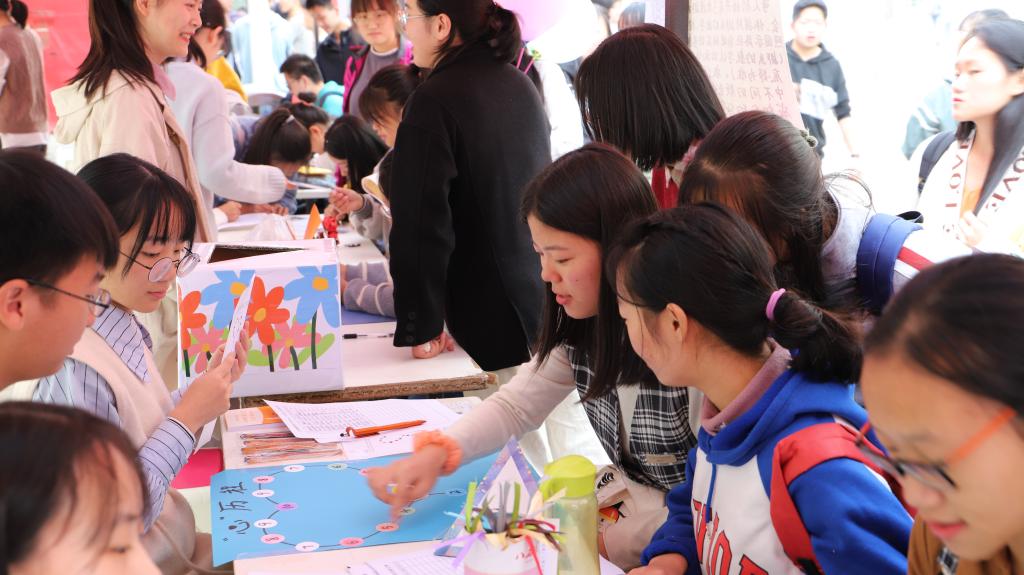 心理健康教育宣传周活动是我校心理健康工作的一项品牌活动,至今已经连续举办十几年。本次现场活动由心理健康教育与咨询中心和各学院心理辅导站精心组织,旨在宣传普及心理健康知识,传播心理健康理念,现场设置了心理学知识闯关、给未来自己的一封信、心灵书签设计等10多项心理体验活动。同学们积极参与心理体验活动,现场气氛热烈。