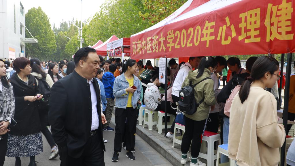 本网讯(文图/刘俊岐)2020年10月20日下午,我校以“同心抗‘疫’,青春绽放”为主题,开展心理健康教育宣传周现场活动,校党委副书记、工会主席张小平及相关部门负责人参加活动。