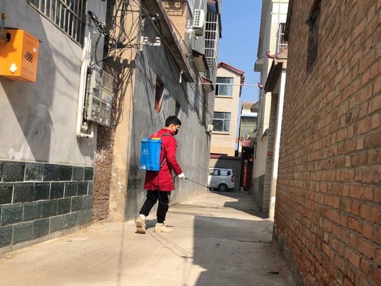 在家观察隔离期满后,张猛就积极与居委会进行联系,主动报名,成为了一名防疫志愿者,后又担任保长一职。张猛同学每天负责的消毒工作是疫情防控的重中之重,由于村里物资比较匮乏,张猛便自费买了一大桶84消毒液,按比例稀释后,每天早中晚三次对辖区住户以及道路用喷雾器喷洒,进行消毒。张猛作为一名保长的职责还包含对辖区居民宣传防疫知识,宣传尽量不要外出;监管从外地返乡的人员,及时进行登记汇报,宣传居家自我隔离等相关知识;同时还积极为辖区联系购买防疫用品,口罩和消毒液,保证每户都能有防护用品,防止疫情在辖区内的发生。