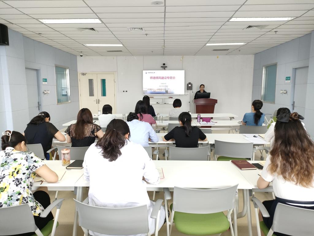 本网讯(文图/张璟)为促进师德师风建设,打造高素质教师队伍,引导教师自觉践行立德树人根本任务。2021年6月8日下午,护理学院在实训楼1017会议室召开师德师风专题会,护理学院党政班子成员、全体教职工参加会议。会议由护理学院副书记马慧玲主持。