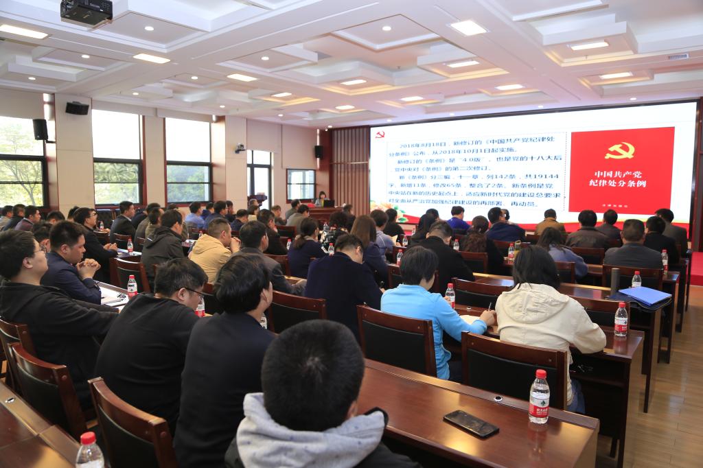 讲座上,赵琳从修订的时代背景和重要意义、主要特点、主要内容、如何贯彻执行等四个方面对新颁布的《中国共产党纪律处分条例》进行了全面而深入的解读,同时结合反腐案例,为大家进行了一场警示教育。她强调,作为党员,要进一步增强纪律意识、规矩意识,做到守纪律、讲规矩,知敬畏、存戒惧,在遵守《条例》上追求高标准,在严守《条例》上远离违纪红线,做“四讲四有”的党员干部。