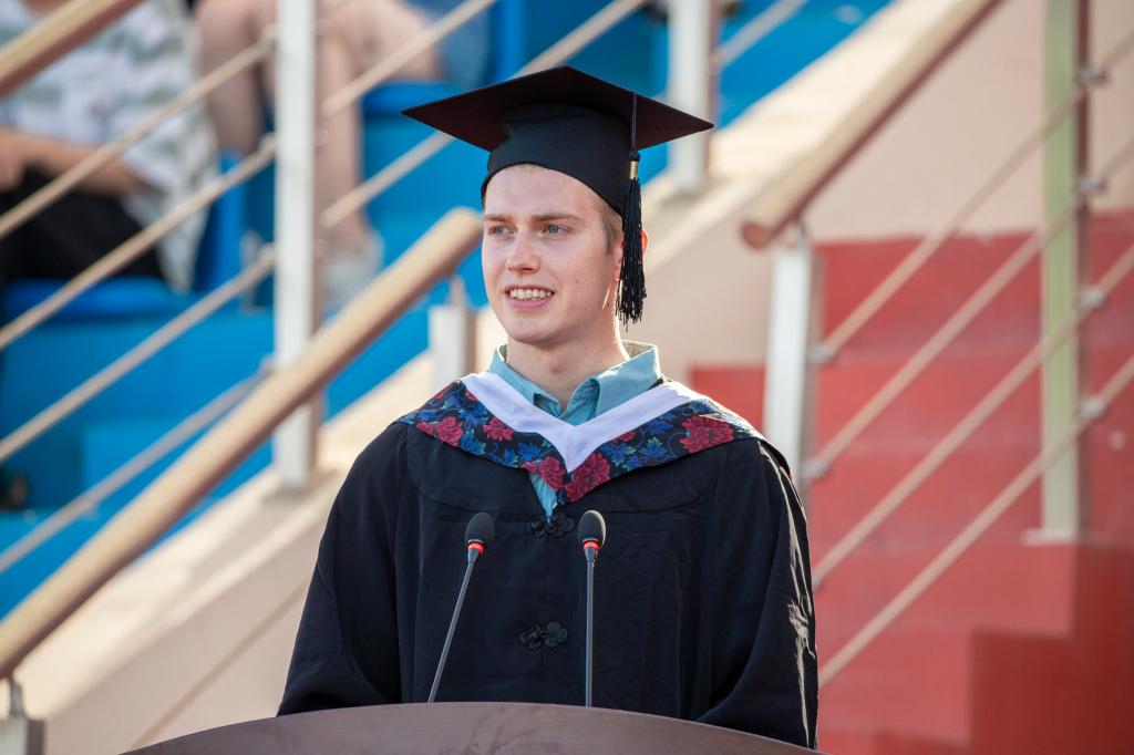 本专科毕业生代表杨琨、研究生毕业生代表秦中朋、留学生代表无名分别发言。他们一致表示,将时刻铭记“厚德博学、承古拓新”的校训,发扬大学精神,坚定医者初心使命,勇于担当作为、勤于实践奉献、敢于开拓创新,坚定地做中医药事业的传承者、守护者、实践者。