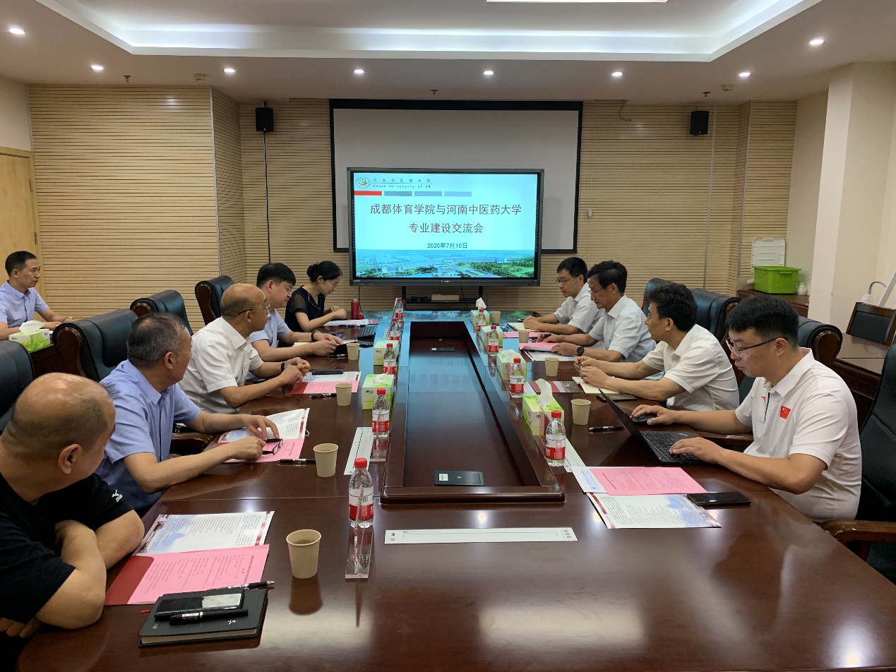 本网讯(文/孙河龙 图/周浩)2020年7月10日上午,成都体育学院党委副书记潘小非,运动医学与健康学院原院长王煜、副院长廖远朋、中医骨伤科教研室主任罗磊一行到我校考察调研专业建设情况。我校副校长冯卫生带领教务处、第二临床医学院、体育学院等部门相关人员参加调研。