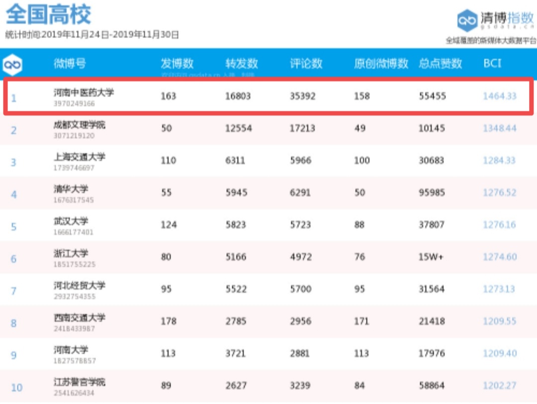 2019年,围绕新中国70华诞、总书记到河南考察调研、“不忘初心、牢记使命”主题教育、全国中医药大会等主题,学校的8个传统媒体、8个新媒体和各院部的64个新媒体平台同频共振,集中发声,共审核发布各类新闻信息12650篇,平均每天36篇。其中,中文网学校要闻1324篇,浏览量160万人次,较去年同期翻了一番;官方微博增设了“习语中医药”“红色文化专栏——不忘初心使命、传承红色基因”等栏目,全年推送7154条,单月浏览量达1500万人次,全年达1.5亿人次,连续8周获得“全国高校”第一,荣获河南高校2018-2019年度宣传先进单位。