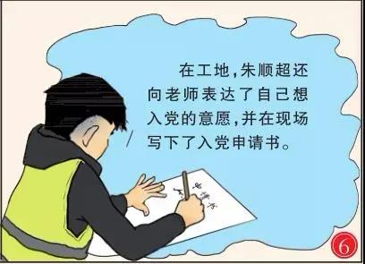 在工地,朱顺超还向老师表达了自己想入党的意愿,并在现场写下了入党申请书。