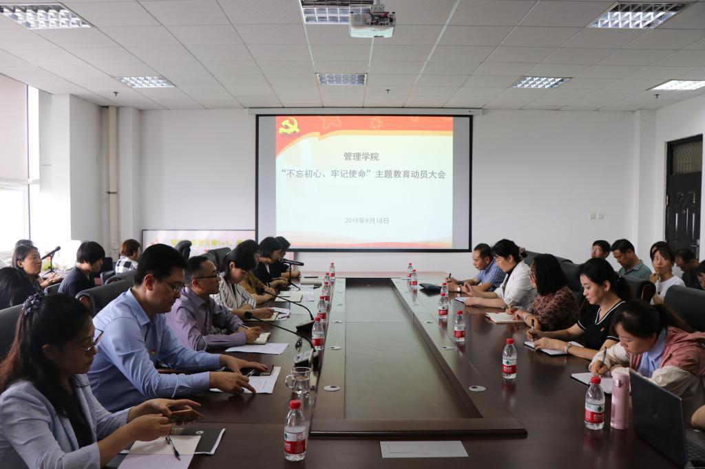 会议伊始,张丽青传达了学校“不忘初心、牢记使命”主题教育动员大会精神。管理学院党委副书记庞亚宾同志宣读了《管理学院“不忘初心、牢记使命”主题教育实施方案》,对管理学院此次主题教育工作进行安排部署。