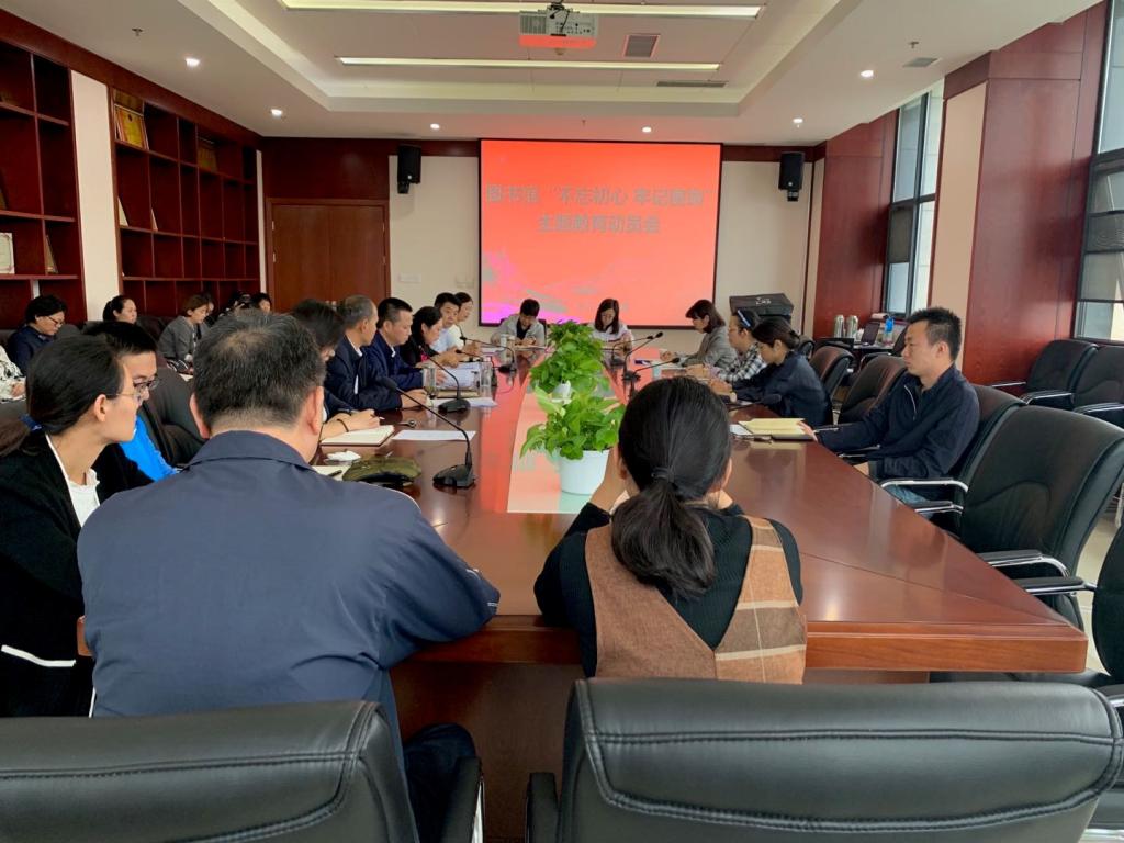 2019年9月19日下午,图书馆在8楼会议室召开“不忘初心、牢记使命”主题教育动员大会,学校主题教育第四指导组组长仲利娟,第四指导组成员刘杰、王谦、李丹到会指导。图书馆处级班子成员、科级干部、全体党员和入党积极分子参加会议。会议由图书馆党总支副书记、馆长雷天锋主持。