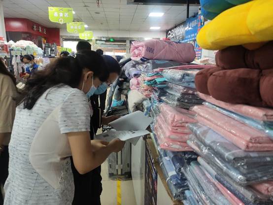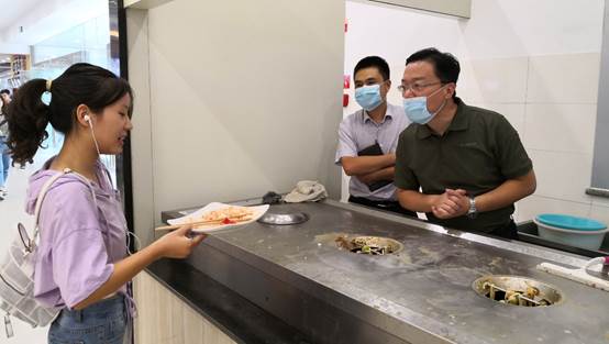 在新生报到处,校纪委副书记赵群英、党委巡察办副主任刘杰带领相关工作人员先后到床上用品销售摊位和两家正在销售床上用品的超市,“一摸二看三闻”,全面了解产品质量,仔细翻阅质检报告和安全证书,向销售人员详细询问产品的生产质量、进货渠道和定价销售等情况。校纪委第一纪检监察室主任梁照伟、第二纪检监察室主任曹峰带领工作人员,在中午用餐高峰期先后到杏苑、橘井两个餐厅的餐具回收处,与用餐学生亲切交谈,充分了解大家的用餐需求、出现剩菜剩饭的原因和意见建议,并向后勤工作人员询问餐饮浪费情况。
