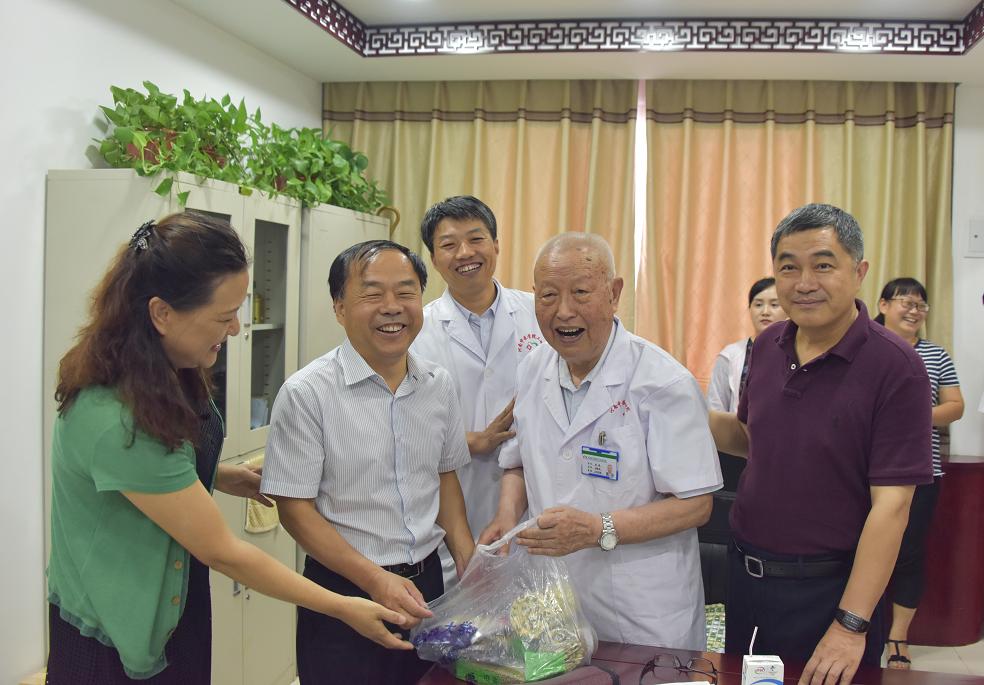 为正在临床一线的国医大师张磊送上防暑降温品