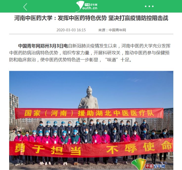 编者按:2020年3月3日,中青网对我校发挥中医药特色优势、坚决打赢疫情防控阻击战进行报道。现将全文刊发如下: