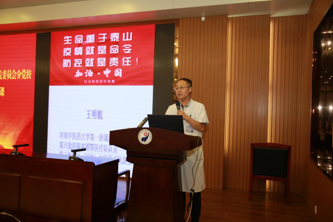 会上,入选“学校样板党支部”的儿科三区党支部、党宣工党支部、本科2016级党支部等五个支部的支部书记分别围绕支部建设、党员管理、党建活动有机融合及疫情防控等方面分享了各自的经验体会。各位书记的交流内容丰富,重点突出,对其他党支部抓好基层党建具有较强的借鉴参考作用。第三批国家(河南)中医医疗队队员的王明航教授和急危重症医学部主任毛峥嵘,也分别结合自己的抗疫经历进行了精彩的讲演,给大家上了一场生动的党课。
