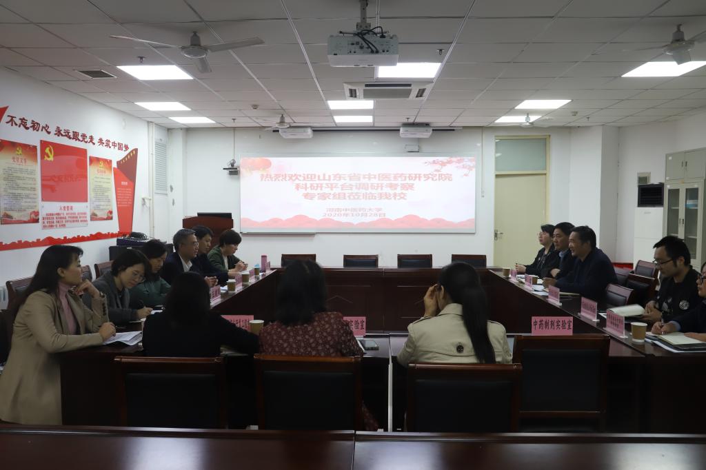 本网讯(文/张俊霞 图/李晓康)2020年10月28日,山东中医药研究院副院长于宗渊一行前来我校就科研平台建设情况进行调研学习。双方在教学实验大楼BM739会议室举行座谈,双方就中医药科研平台建设进行了深入交流和探讨。我校中医药科学院副院长李军、药学院副院长崔瑛、科研平台负责人及骨干教师参加会议,会议由李军主持。