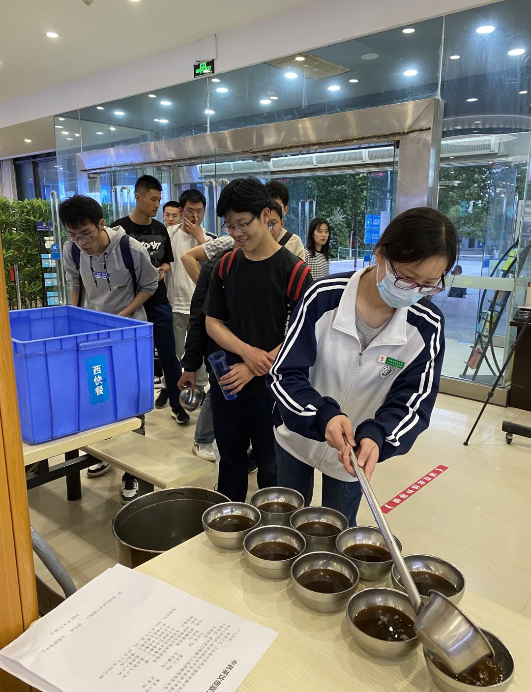 此次活动是学工部党支部开展“学党史、我为师生办实事”的重要组成部分。在前期,学工部党支部通过走访学生宿舍,了解到部分学生因近期天气变化,出现了身体不适、水痘、疱疹等传染病偶发的情况,学工部第一时间联系第一附属医院龙子湖院区保健部,特邀请全国知名中医专家徐立然教授为同学们拟定具有清热解毒、消痈益气功效的中药茶饮方剂,根据配方及时组织中药茶饮原药,并委托学校后勤服务中心、第二附属医院、郑州人民医院等相关单位为同学熬制茶饮,免费分发给各个校区的同学。