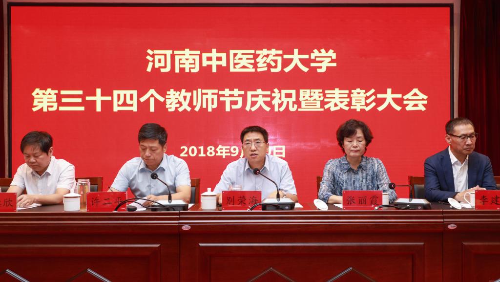 “一个人遇到好老师是人生的幸运,一个学校拥有好老师是学校的光荣,一个民族源源不断涌现出一批又一批好老师则是民族的希望”。老师们、同志们,大家是学生成长成才的引路人,是学校建设发展的核心,是中华民族“梦之队”的筑梦人。真诚地希望各位老师不为世俗所侵,不为浮躁所扰,不为利禄所诱,更加积极主动地融入到学校转型发展中,潜心教书育人,勇攀学术高峰,为培养高水平医学人才,为尽快将学校建成国际知名、国内一流的中医药大学,助力中原更加出彩,做出新的更大的贡献!