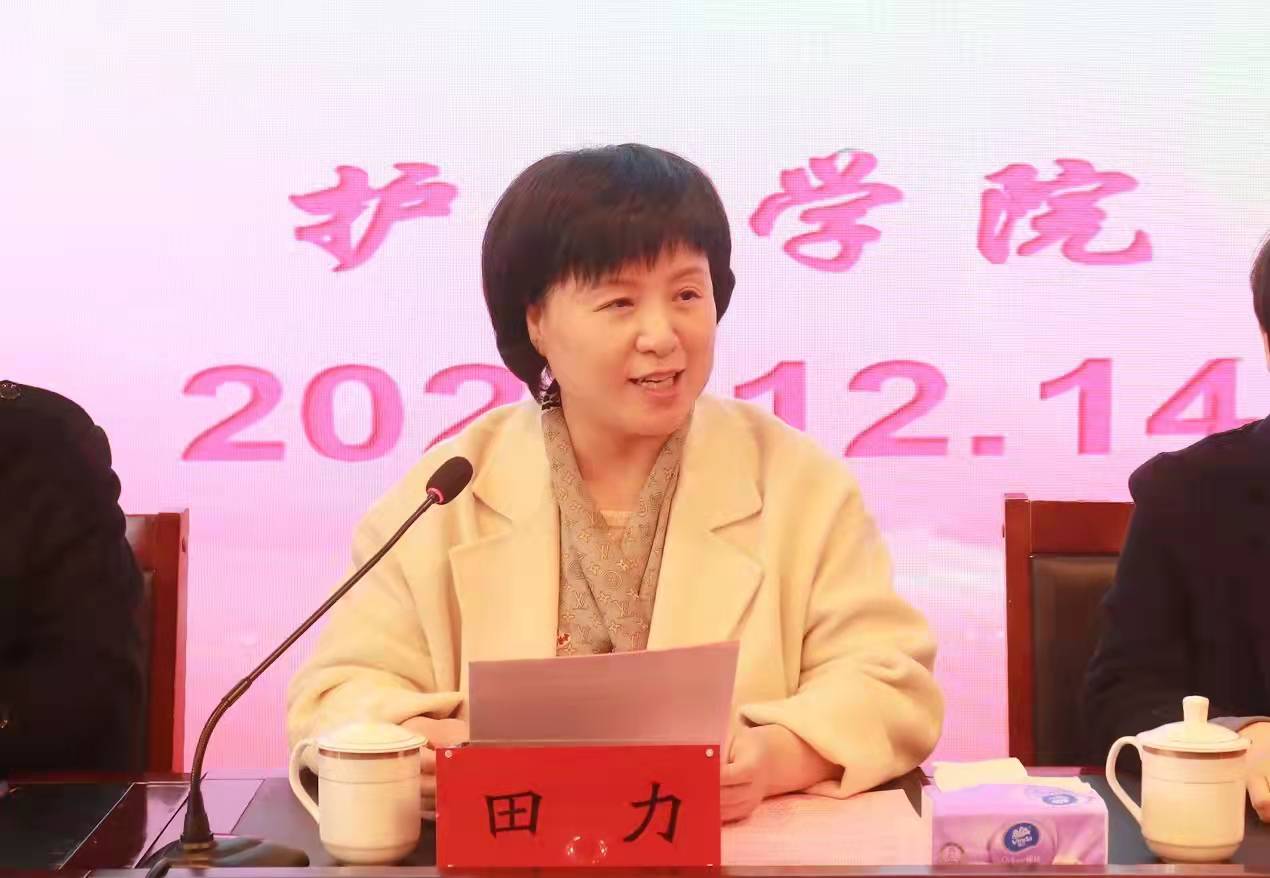 本网讯(文/和青森 图/李林峰)2021年12月14日,护理学院在图书馆第二报告厅举办第七期“南丁格尔”实验班开班仪式,校党委委员、副校长田力,第45届南丁格尔奖章获得者、柘城县人民医院护理部主任宋静、教务处处长禄保平、校团委副书记黄怡博、护理学院党政班子、第七期“南丁格尔”实验班学员及师生代表70余人参加开班仪式,护理学院党委副书记马慧玲主持活动。