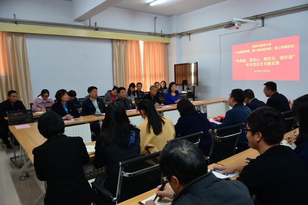 本网讯(文/胡兴旺 图/田辉 潘向昆)2019年11月22日,省委主题教育第十三巡回指导组成员张治胜、王景杰、赵丹莅临三附院调研指导“不忘初心、牢记使命”主题教育开展情况。我校党委副书记张丽霞、组织部副部长马瑜、三附院班子成员、总支书记和支部书记代表等参加汇报会。汇报会在三附院综合楼1106会议室召开。
