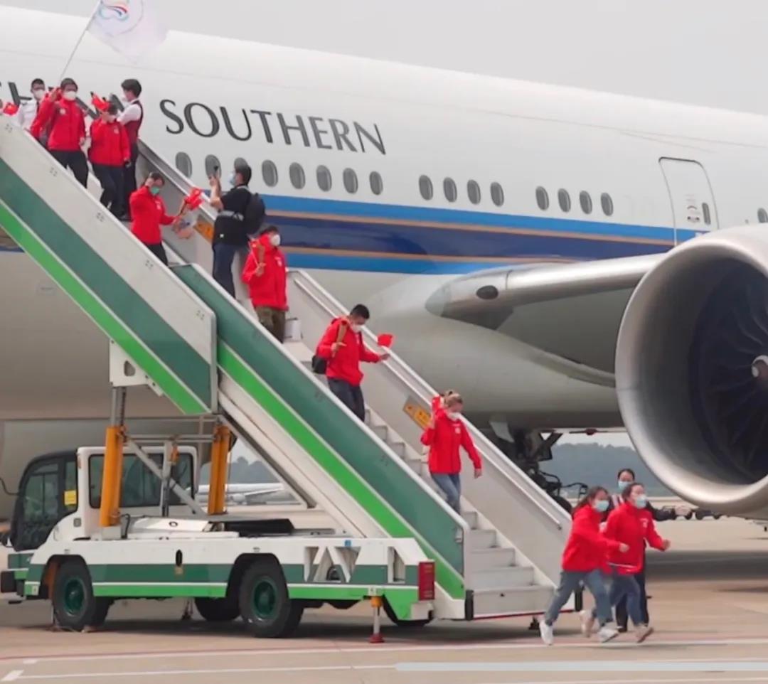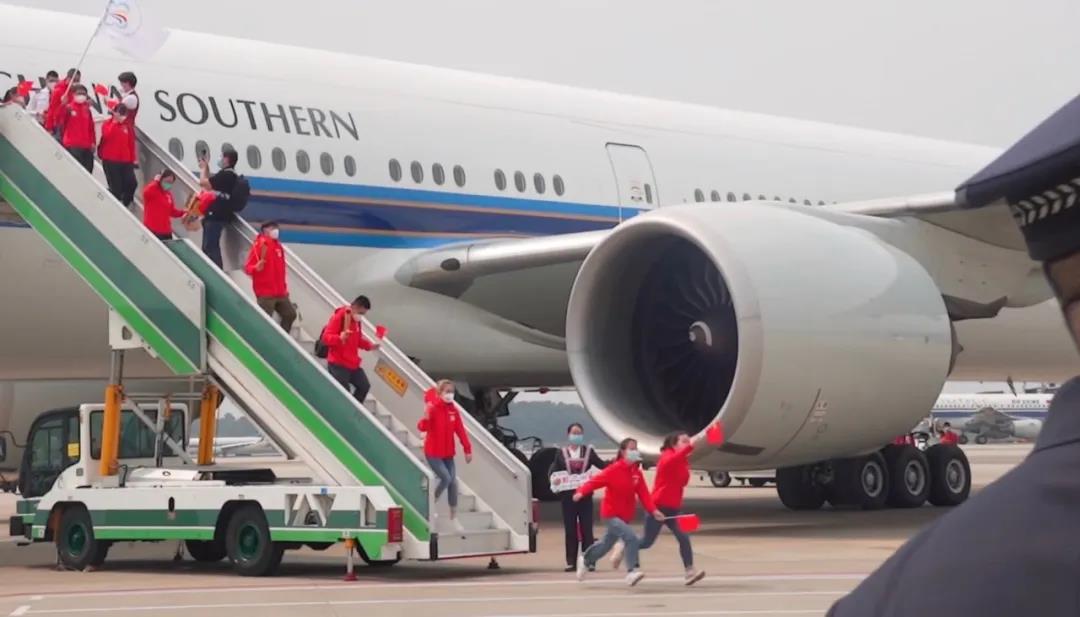 完成驰援任务,乘坐专机回到广州
