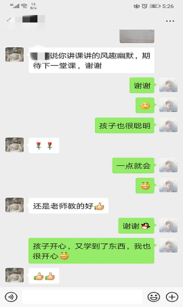 志愿者们与辅导学生正在进行连线辅导和家长对志愿者的肯定