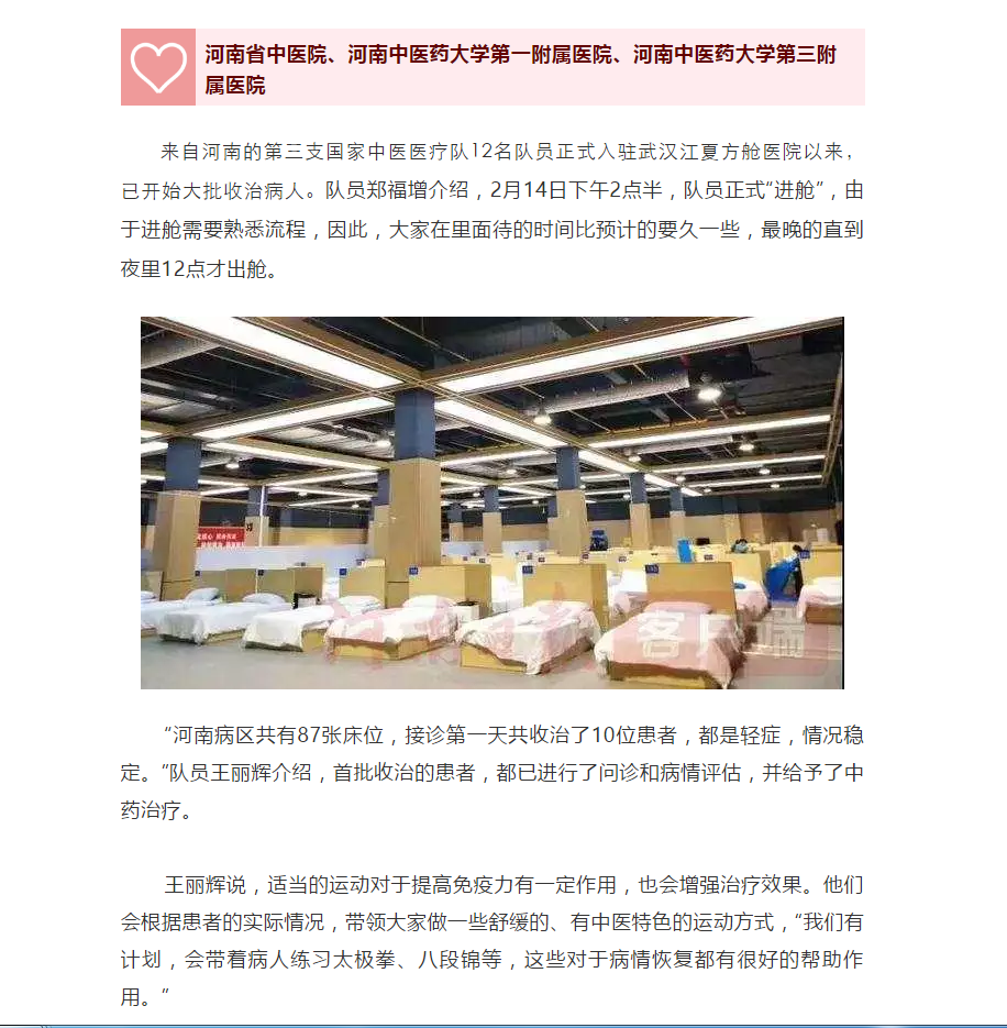 编者按:2020年2月16日,国家中医药管理局官方微信对我校国家(河南)援鄂中医医疗队一线抗疫实录进行报道,现将部分文章刊发如下: