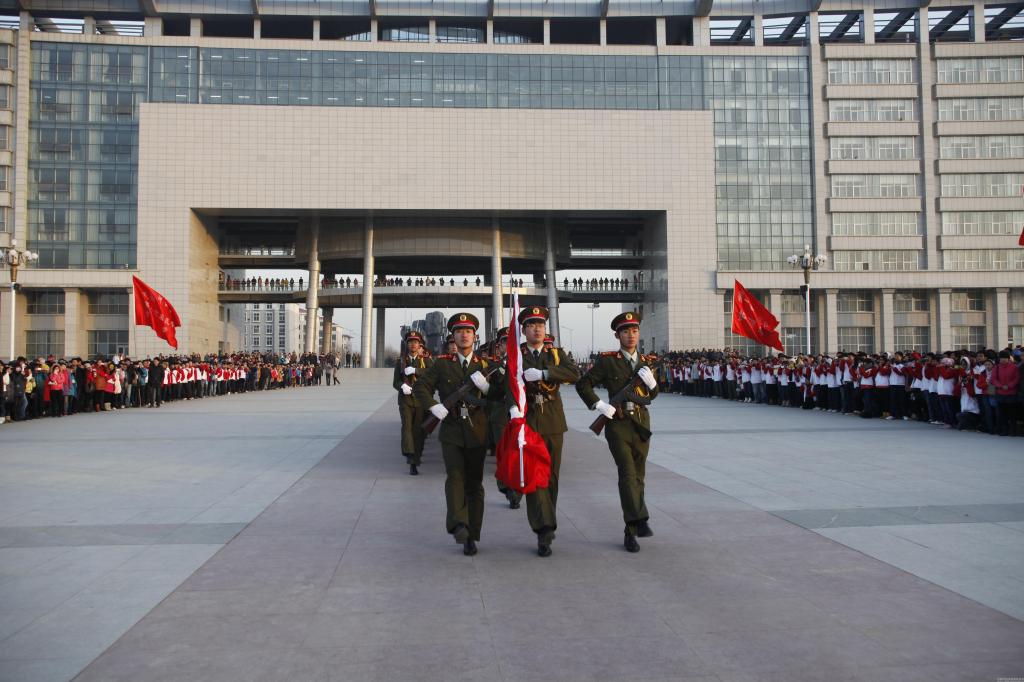 仪式上,校长郑玉玲对参加升国旗观礼活动的全体师生表达了新年的祝福。党委宣传部部长刘保庆在主持讲话中讲解了举办升国旗观礼活动的重要意义,“当五星红旗冉冉升起的时候,我们心中充满了对伟大祖国的敬重,我们的民族自尊心、自信心、自豪感和爱国主义情感油然而生。”他还介绍了我校的升挂国旗制度,今后我们将在每周一、新学期开学第一天和重大节庆日都要举行升旗观礼活动。