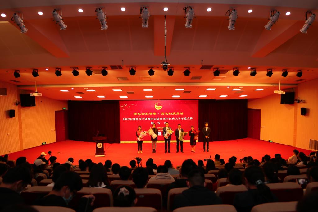 本网讯(文/郭薇 图/邢灏聪)2020年11月13日下午,“绽放出彩青春·坚定制度自信”2020年河南青年讲师团走进我校示范宣讲报告会在图书馆第一报告厅举行。校党委副书记、工会主席张小平,党委宣传部、校团委等部门负责人,“筑梦英才”实践班、“团员小筑”班成员,业余团校学员,各学院学生代表等300余人现场聆听了报告会。
