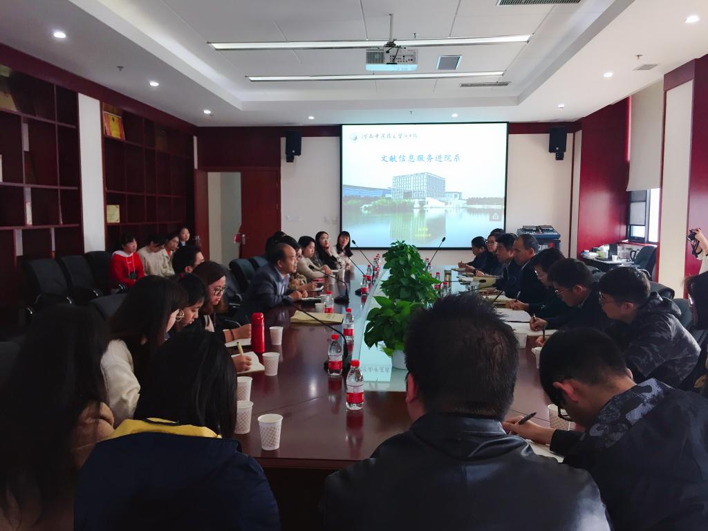 2018年10月31日上午,我校“文献信息服务进院系”活动走进研究生院,在图书馆八楼会议室召开专题座谈会,拉开了此次活动的序幕。研究生院常务副院长苗明三、副院长高建峰和图书馆馆长雷天锋、副馆长孙曙明、副馆长崔海英以及相关科室主任出席座谈会,20名研究生代表参加座谈会。会议由雷天锋主持。