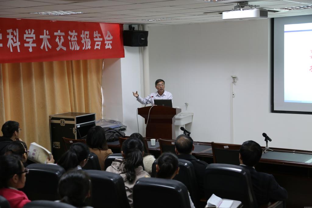 2013年11月12日下午,应我校河南省重点学科中药学学科的邀请,国家药典委员会委员、国务院特殊津贴获得者、中华中医药学会炮制分会副主任委员、全国中药炮制教育研究会副理事长、国家中医药局重点学科-中药炮制学科带头人、辽宁省中药炮制工程技术研究中心主任、辽宁省中药新药研制开发中心主任、辽宁中医药大学药学院院长贾天柱教授做客我校,并作了题为“中药热点问题及国家标准修订”的学术报告。我校中药学学科带头人、药学院院长冯卫生教授、方向带头人崔瑛教授、张振凌教授等对贾天柱教授的到来表示热烈欢迎。重点学科成员、研究生和郑州瑞龙制药有限公司代表等100余人聆听了学术报告。讲座由药学院副院长崔瑛教授主持。