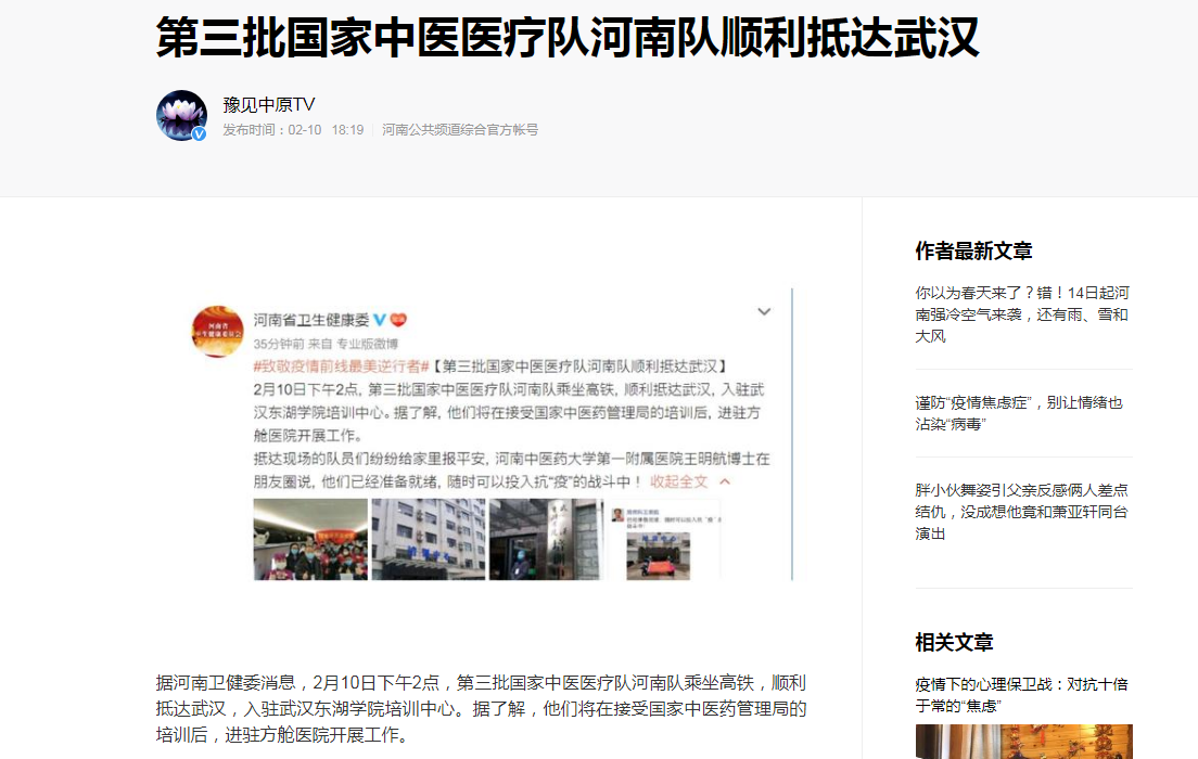 编者按:2020年2月11日,网易新闻、河南公共频道综合官方帐号对我校援助武汉国家中医医疗队(河南队)顺利抵达武汉进行报道。现将网易新闻全文刊发如下: