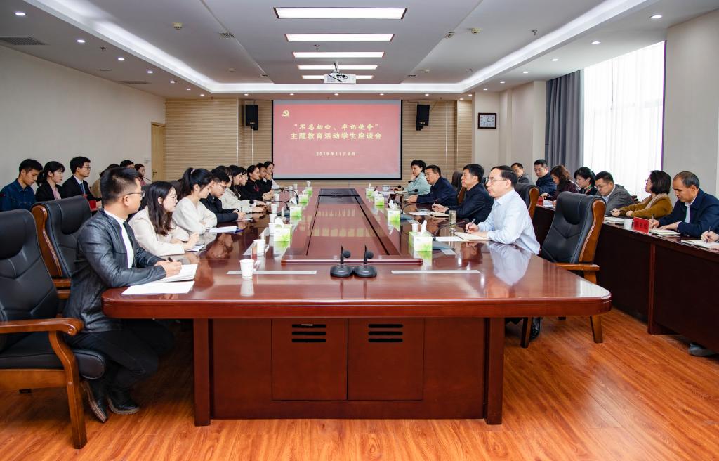 本网讯(文/牛正攀 图/秦东仁)为推动主题教育扎实有效开展,切实做到开门抓教育,解决师生最急最忧最盼的紧迫问题,2019年11月6日下午,我校在教学实验大楼BS605会议室召开“不忘初心、牢记使命”主题教育学生代表座谈会。来自各院部的20位本科生、研究生代表和相关职能部门负责人参加座谈,校党委书记别荣海,校长许二平,校党委委员、副校长田力、工会主席张加民出席座谈会。会议由别荣海主持。