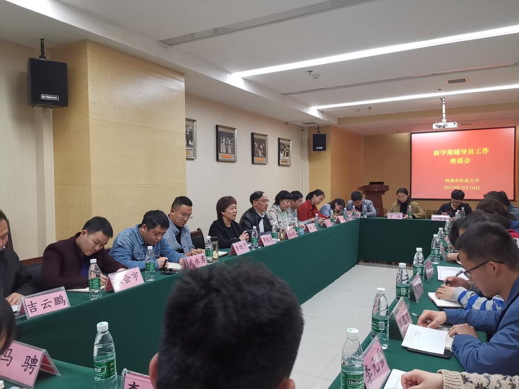 本网讯(文图/岳颀)2019年3月18日下午,我校在综合教学实验大楼BM708会议室召开辅导员工作座谈会。校党委委员、副校长田力、工会主席张加民出席会议,来自10个学院的24名辅导员代表参加座谈会。座谈会由学工部副部长、大学生心理健康教育与咨询中心主任李俊芝主持。