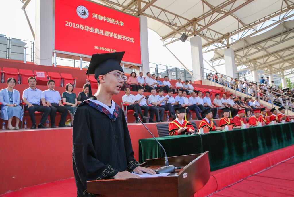 随后,本专科毕业生代表张桂星、研究生毕业代表生户振亚、留学生代表吕成遵分别发言,共同表达了对母校未来发展的美好希冀,并立志谨记教诲,坚守己心,为中医药事业的蓬勃发展添砖加瓦。教师代表、第一临床医学院诊断学科孙士玲教授向即将毕业的同学们表达了祝贺,并叮嘱毕业生“莫失精诚赤子心,莫忘春风化雨情”,希望毕业生们能够树立终身学习的理念,以无限热忱投身于工作及实践。毕业生李轶琨同学的父亲李德建作为家长代表,在发言中寄语毕业生要以真诚之心待人处世,敢于尝试,敢于挑战,勇担时代赋予的重任。