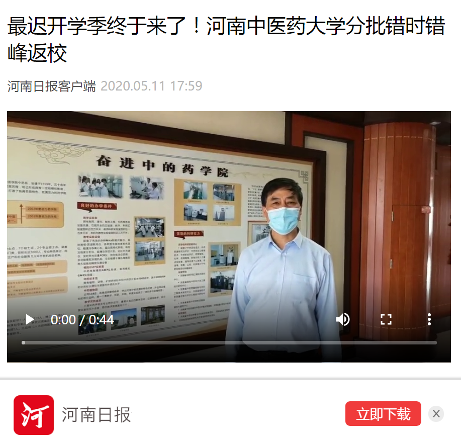 编者按:2020年5月11日,河南日报客户端对我校首批学子返校复学进行报道。现将部分文章刊发如下: