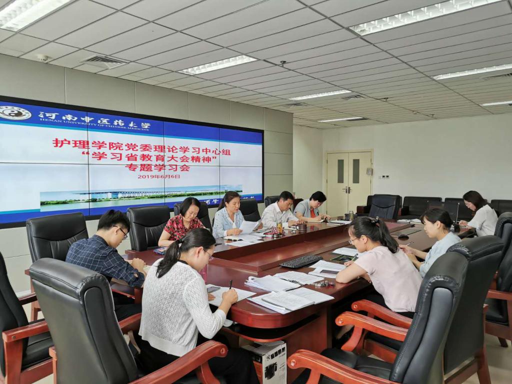 本网讯(文图/谭亚男)2019年6月6日,护理学院在实训楼1015会议室组织召开党委理论学习中心组专题学习会,认真学习贯彻全省教育大会精神。护理学院党委理论学习中心组全体成员参加了会议,会议由党委书记尹丽主持。