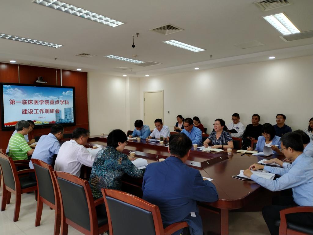 此次调研对基础医学院、药学院、第一临床医学院和第三临床医学院进行单独走访调研,对管理学院、外语学院、信息技术学院、护理学院、康复医学院和马克思主义学院进行集中调研。会上,学科办主任詹向红介绍了我校当前的重点学科、学位点学科、学科特区建设情况,说明了此次调研的目的和主要内容。相关院部院长或主管副院长就本院重点学科建设情况、思路、措施及存在问题进行了交流,各重点学科带头人围绕学术方向、师资队伍、人才培养、科学研究、平台建设、经费使用等方面提出了问题和建议。李建生在总结讲话中肯定了部分院部的创新做法,他指出,重点学科建设过程要以“解决问题为导向,完成任务目标为关键”,团队协作,形成合力;院部要积极主动作为,引进培养并举,统筹搭建平台,营造爱才环境,推动重点学科、学科特区建设;各学科要明确目标任务,凝练学术方向,加强队伍建设,提升科研实力,助力一级学科、学科特区发展;学科办要汇总调研问题,联合相关部门,提出解决方案,回应学科关切。