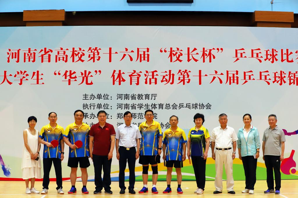 本网讯(文/常瑞 王少毅 图/常瑞)六月艳阳照,端午竹粽香。2021年6月11日至13日,河南省高校第十六届“校长杯”乒乓球比赛在郑州师范学院举行。我校领导应邀组队参加了本次比赛。