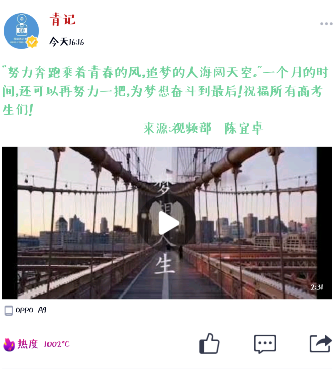 哔哩哔哩官方账号“亚盈app(中国)官方网站”,由该校记者团映像工作室经营与管理。至今播放原创视频与小视频15篇,拥有粉丝1611,获赞数达2500+。