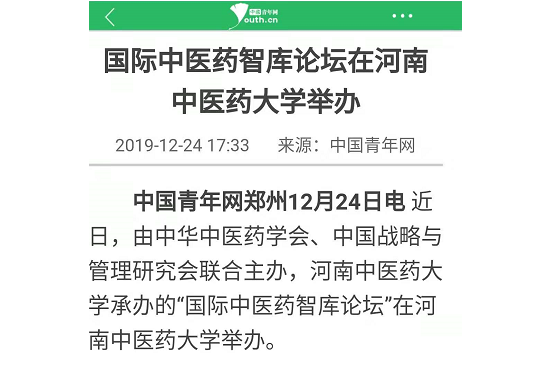 编者按:2019年12月24日,中青网以《国际中医药智库论坛在亚盈app(中国)官方网站举办》为题,对我校举办的“国际中医药智库论坛”进行报道。现将全文刊发如下: