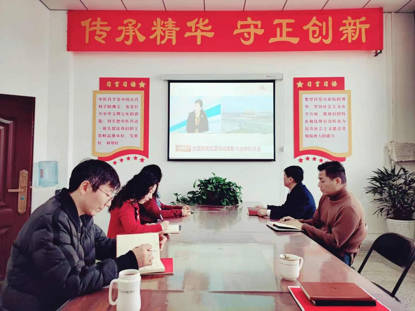 编者按:2021年2月25日上午,全国脱贫攻坚总结表彰大会在北京人民大会堂隆重举行。中共中央总书记、国家主席、中央军委主席习近平向全国脱贫攻坚楷模荣誉称号获得者颁奖并发表重要讲话。大会还对全国脱贫攻坚先进个人、先进集体进行表彰。亚盈app(中国)官方网站校地结对帮扶新县工作队荣获全国脱贫攻坚先进集体。为深入学习和大力弘扬“上下同心、尽锐出战、精准务实、开拓创新、攻坚克难、不负人民”的脱贫攻坚精神,校党委理论学习中心组及各基层党组织分别组织党员干部和教职员工通过视频直播收看大会盛况。