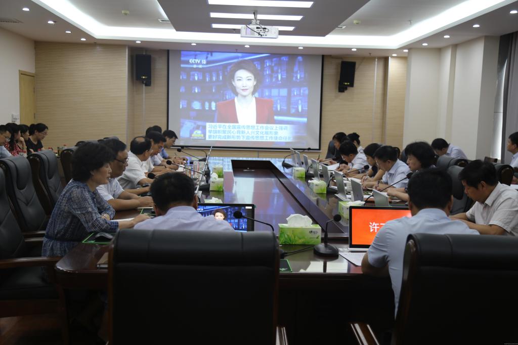 会议集中收看了新闻视频“全国宣传思想工作会议报道”“习近平总书记在全国教育大会上发表重要讲话报道”“王国生、陈润儿接见河南省优秀教师代表报道”。党委委员、宣传部部长刘保庆摘要传达了省委《关于当前我省意识形态领域情况的通报》。