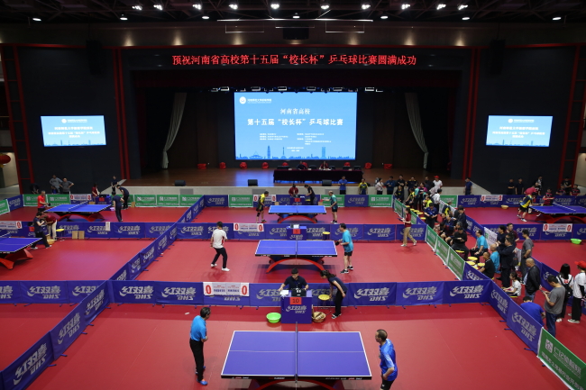 本网讯(文/刘阳 李涛 图/李昌)2019年5月10-12日,由河南省教育厅主办,河南省学生体育总会乒乓球协会执行,河南师范大学新联学院承办的河南省高等学校第十五届“校长杯”乒乓球比赛顺利举行,来自省内41所高校的270余名校领导参加了比赛。