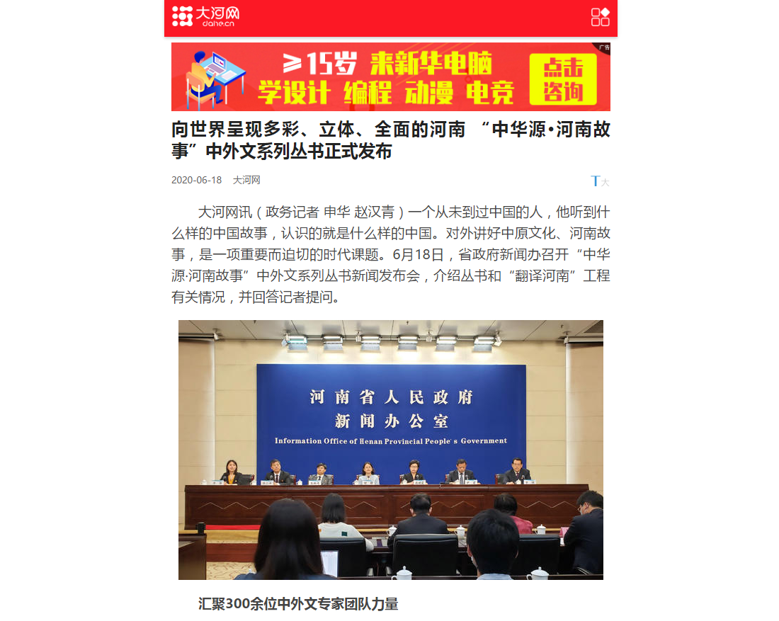编者按:2020年6月18日,大河网对 “中华源·河南故事”中外文系列丛书正式发布进行报道。现将全文刊发如下: