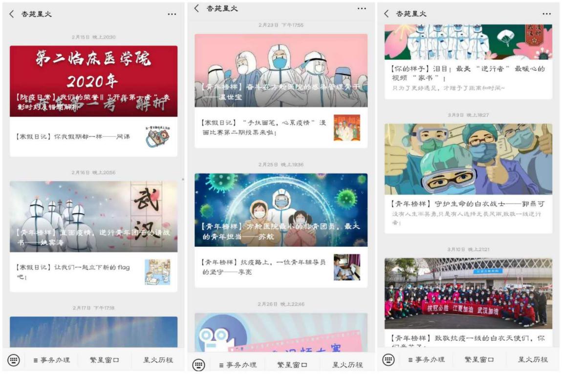 为凝聚家校力量,号召同学们正确认识疫情,增强防护意识和责任担当。第二临床医学院通过多种渠道和方式宣讲防疫知识,打通“最后一公里”,建立家校互帮互助的工作模式。同时,坚持利用党好建公众平台和三大团属新媒体平台,积极发掘疫情防控工作中学生党员志愿者的优秀典型和先进事迹,选树典型作为身边“青年榜样”在媒体平台上推送,做到大学生思想政治教育工作不断线。此外,第二临床医学院团委还带领学生会开展了“开年第一考”防疫知识竞赛、漫画比赛、微视频大赛、药膳厨艺大赛、线上手拉手志愿活动等一系列丰富新颖的活动,引领新时代青年价值新风向。