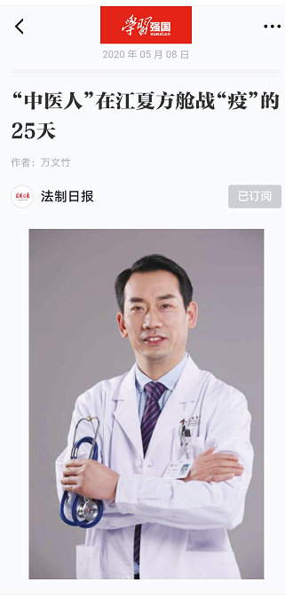 编者按:2020年5月8日,法制日报刊发了题为《“中医人”在江夏方舱战“疫”的25天》的文章,讲述了第五批援鄂国家(河南)中医医疗队、河南省第十二批援鄂医疗队领队、我校二附院张勤生教授在江夏方舱医院抗“疫”之路,现将全文刊发如下: