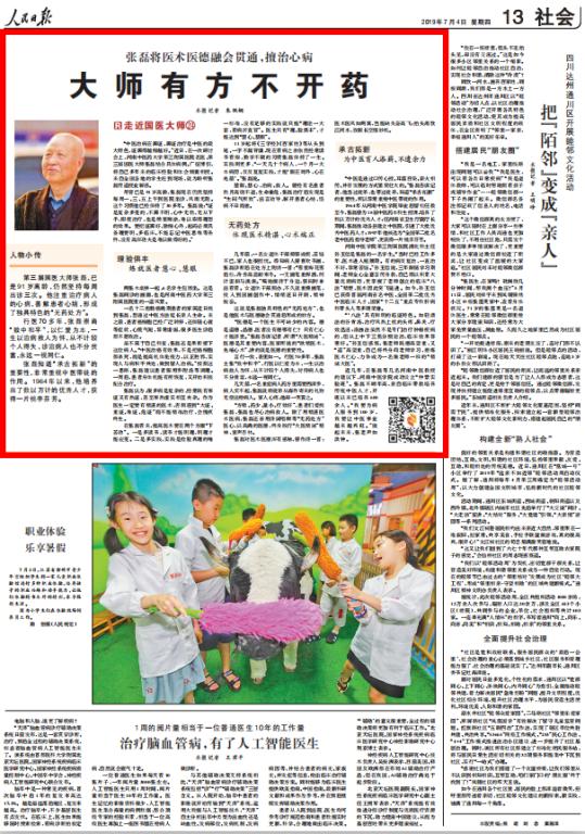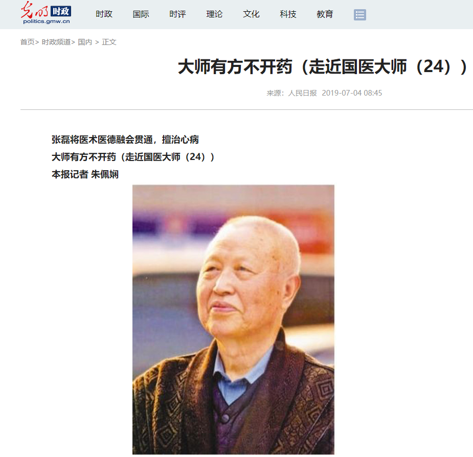 编者按:2019年7月4日,人民日报以《大师有方不开药》为题,对我校国医大师张磊教授进行了专题报道。人民网、光明网等媒体进行了同步转载,并附人民映像短视频——《张磊:“无药处方”见医术仁心》。现将报道全文刊发如下,后附人民映像视频链接。