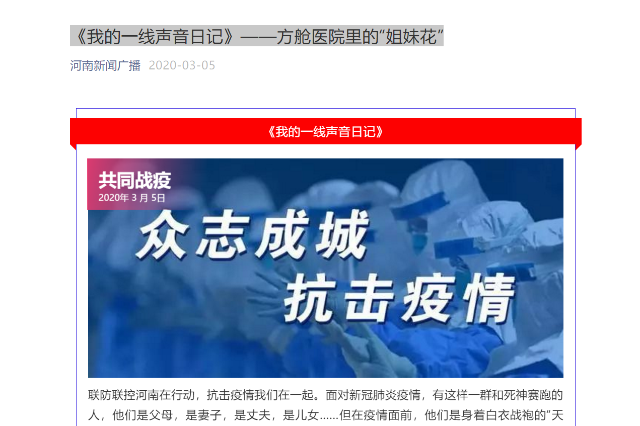 《我的一线声音日记》——方舱医院里的“姐妹花”