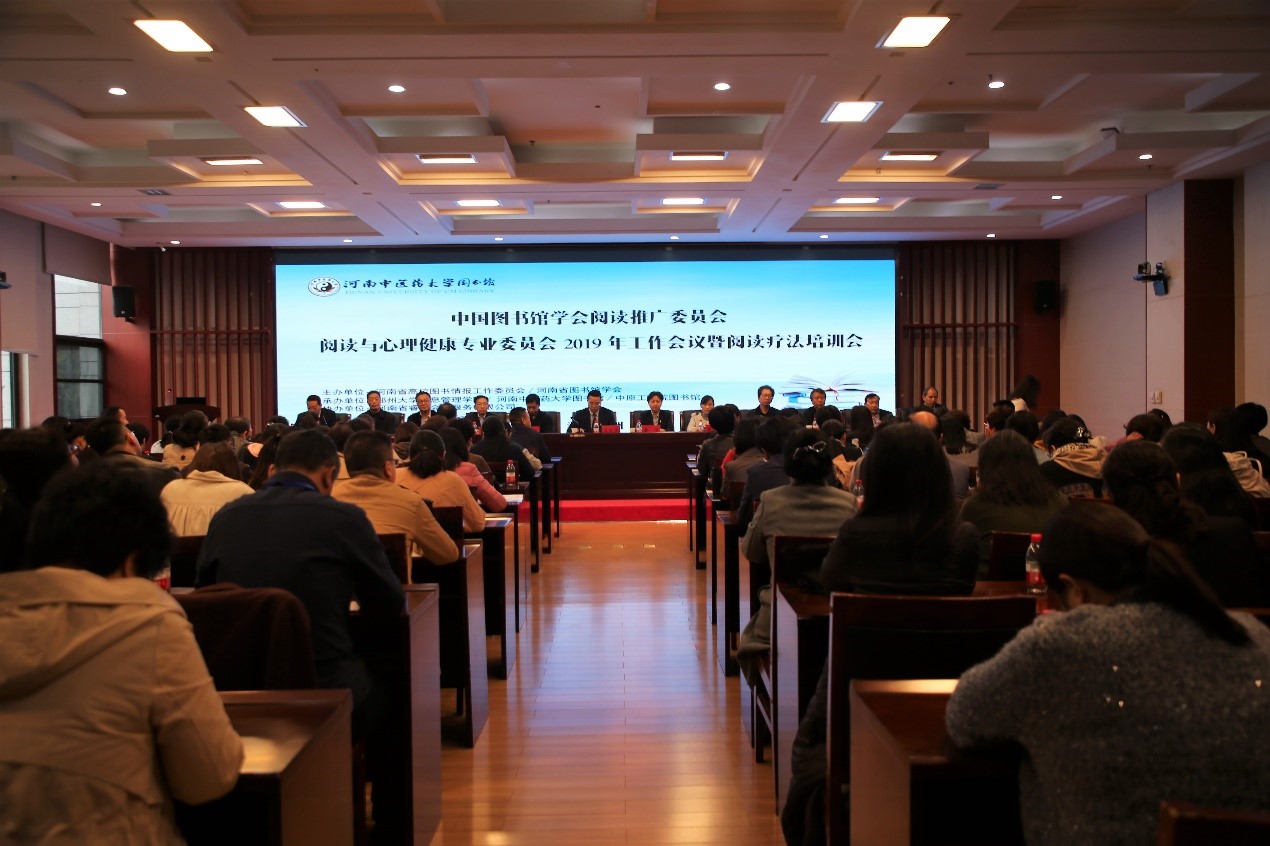本网讯(文/郭维嘉 图/李冕)2019年10月14至15日,由河南省高校图书情报工作委员会和河南省图书馆学会共同主办,郑州大学信息管理学院、我校图书馆和中原工学院图书馆承办的“中国图书馆学会阅读与心理健康专业委员会2019年工作会议暨阅读疗法培训会”在我校图书馆第二报告厅召开。河南省文化和旅游厅正厅级巡视员康洁、河南省教育厅高教处副处长张小茜、河南省高校图书情报工作委员会主任崔慕岳、郑州大学信息管理学院院长臧国全、我校新闻中心主任王秋安等领导嘉宾出席会议,来自北京大学等国内阅读疗法领域的数十位资深专家、近百位代表和我校图书馆处级班子成员、全体职工参加会议。