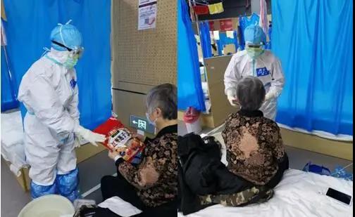 在方舱医院还有很多和这位阿姨一样的病人,他们一开始因为见不到家人,对疾病非常恐惧。经过多日来的相处,患者逐渐变得平和、乐观、开朗起来,他们开始了解、理解并心疼援鄂队员们,而队员们也被方舱医院里发生着的点滴感动并增添更大的信心和战斗的力量。这就是一方有难、八方支援的力量!这就是守望相助、共克时艰的温暖!