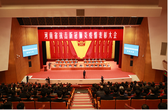 会议宣读了《中共河南省委、河南省人民政府关于表彰河南省抗击新冠肺炎疫情先进个人和先进集体的决定》和《中共河南省委关于表彰河南省优秀共产党员和河南省先进基层党组织的决定》。王国生、尹弘、刘伟等为受表彰的先进个人、先进集体和优秀共产党员、先进基层党组织代表颁奖。