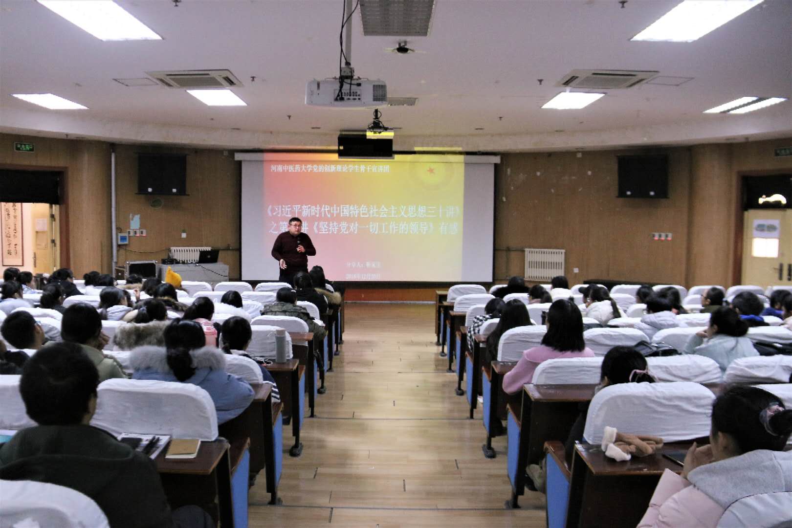 本次学习宣讲系列活动在校团委面向全校团员青年开展的“青年大学习,建功新时代”学习活动的基础上,由马克思主义学院专家教授悉心指导,通过集中学习、理论试讲、集体备课的形式,从“初心”学习社中择优选拔15名马克思主义理论专业研究生和思想理论类学生社团负责人组成学生骨干宣讲团,以学习宣传《习近平新时代中国特色社会主义思想三十讲》为主要内容,从不同方面展开面向全校基层团支部的理论宣讲,使我校广大团员青年持续深入学习领悟习近平新时代中国特色社会主义思想和党的十九大精神,牢固树立“四个意识”,坚定“四个自信”,切实把思想和行动统一到习近平新时代中国特色社会主义思想上来,统一到实现中华民族伟大复兴中国梦上来,统一到学校党委的要求上来。