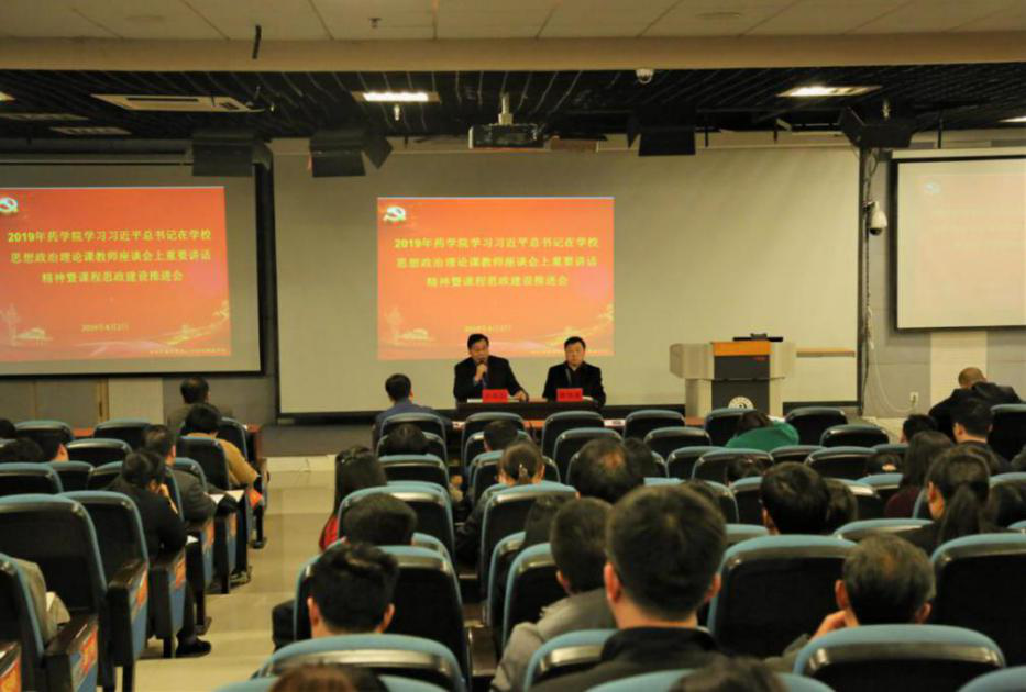 本网讯(文/图:赵琪璐)为贯彻落实习近平总书记有关教育工作的一系列重要讲话精神,推进课程思政建设,2019年4月2日下午,药学院在教学实验大楼A634召开学习习近平总书记在学校思想政治理论课教师座谈会上重要讲话精神暨药学院课程思政建设推进会,校党委委员、宣传部部长刘保庆,药学院党政领导、全体教职工参加。会议由药学院党委书记陈随清主持。